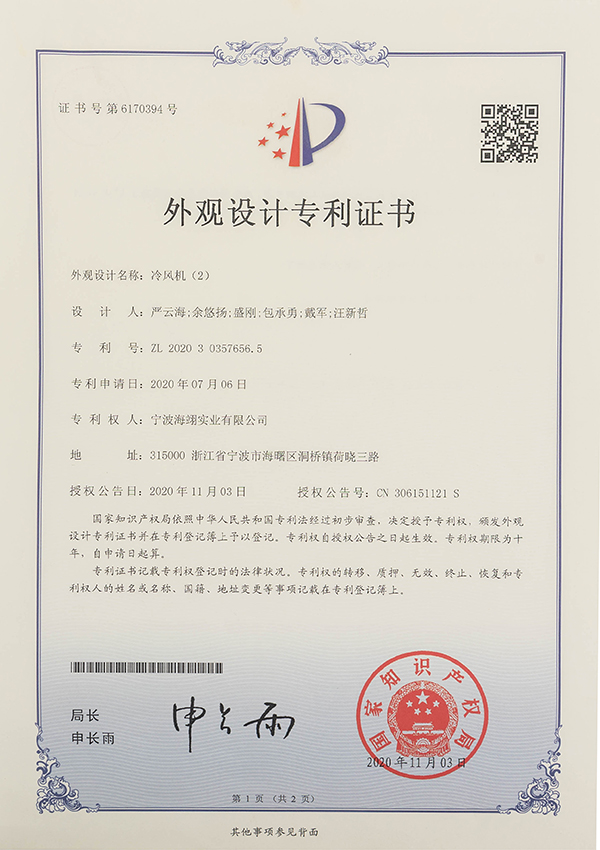 外觀設計專利證書