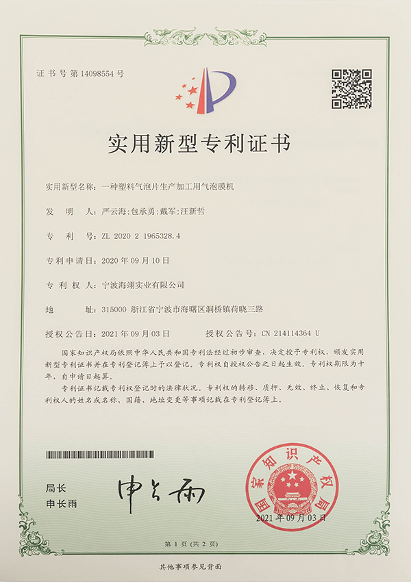 實用新型專利證書